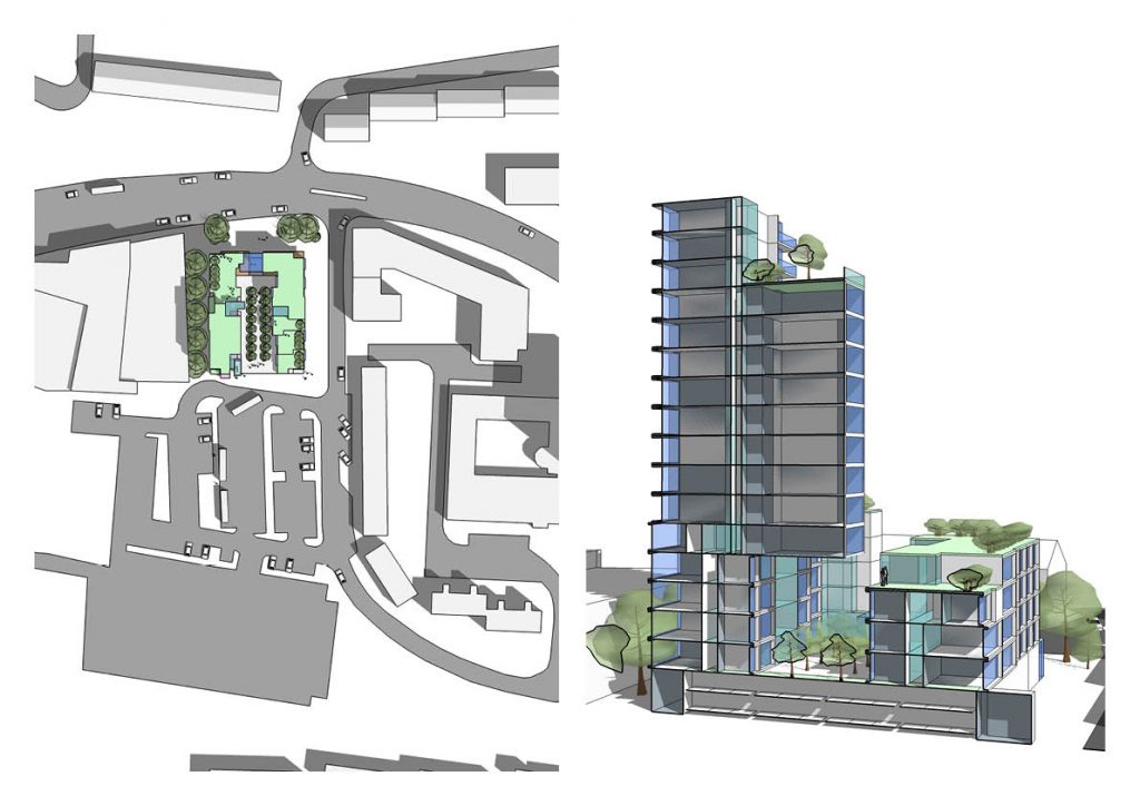 To a brief developed in association with the Campus, proposals have been developed to create an urban solution that maximises an underutilised site, incorporating a split commercial and parking podium base, with 175 unit student accommodation block rising above, wrapping around a landscaped courtyard amenity space.